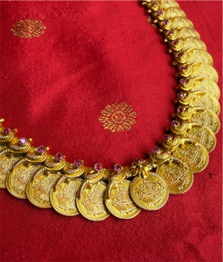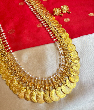 The Pratha Antique Silver Lakshmi Kasumala Coin Necklace/Waistbelt (Pearl)