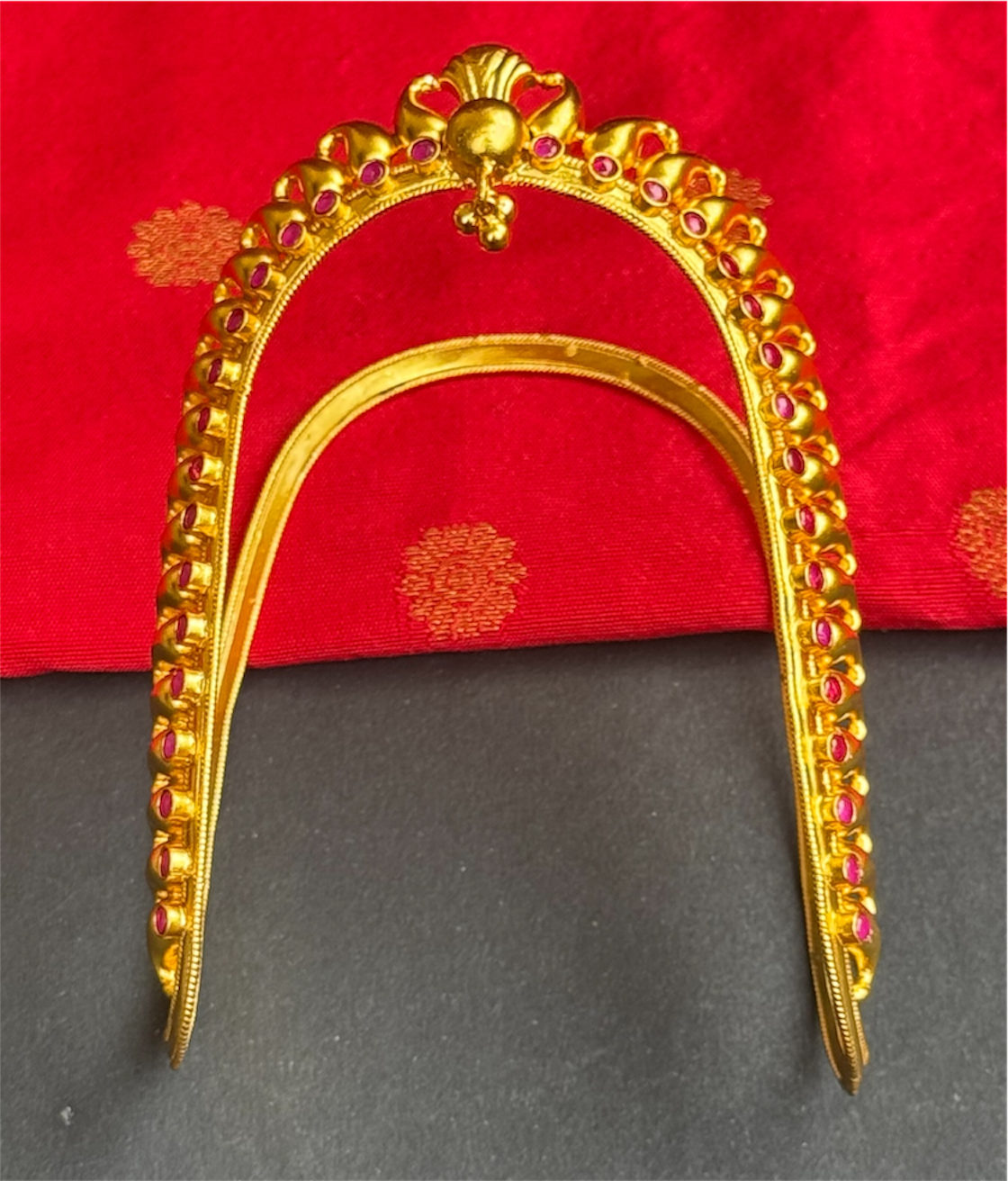 Our latest creation honors this ancient South Indian tradition. Handcrafted in 92.5 Sterling Silver and dipped in 24k gold for that authentic antique glow, it features the "Manga" (paisley) motif—a timeless emblem of elegance.