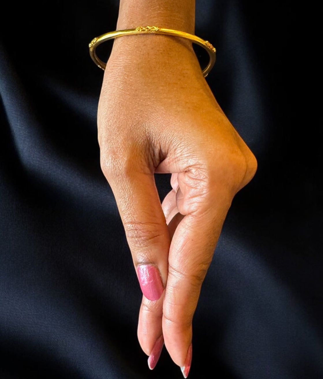 Introducing another stunning design in 925 Pure Silver Bangle this is a KO Original design. Designed in-house and meticulously handcrafted at our workshop, each bangle undergoes 5-6 distinct processes, with a skilled artisan dedicated to every stage, ensuring unrivaled quality and precision.