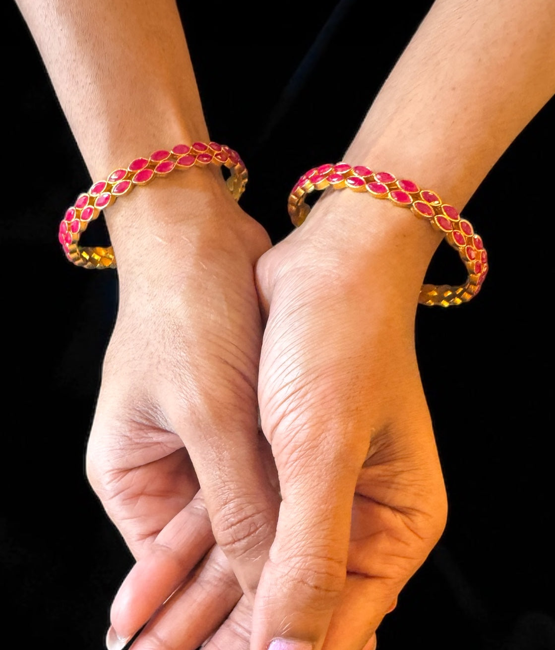 A pretty bangle in an attractive red colour, this makes a great accessory. 'Marquis' shaped red kemp stones come together in Sterling Silver (92.5%) to create this exclusive piece. This seamlessly handcrafted bangle can be bought as a single piece or in a pair. The price listed is for a single bangle.