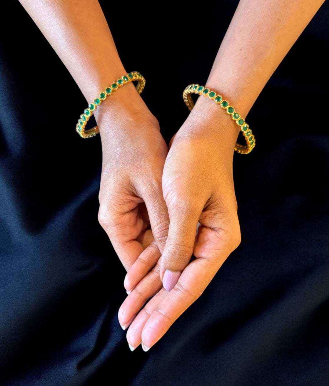 The Tanmaya Silver Green Kemp Bangle-Single (Size /2.2/2.4/2.6/2.8)