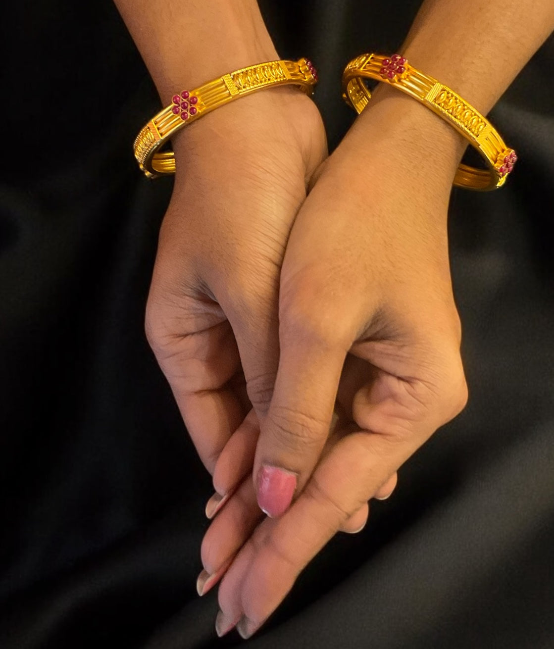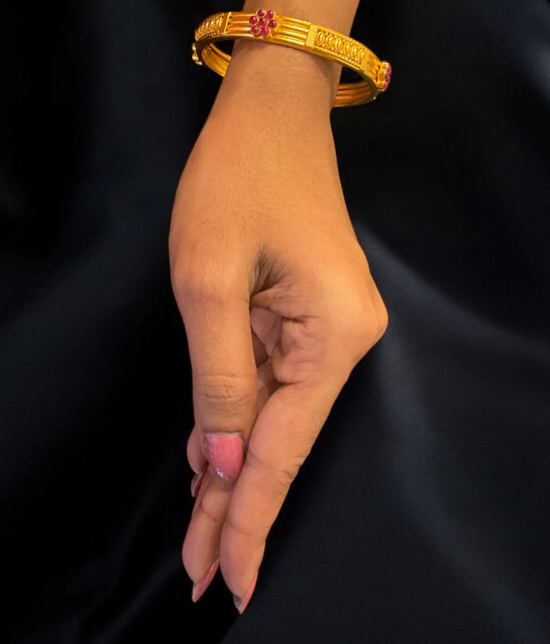 Handmade using the age-old techniques of temple jewelry, each bangle is a testament to superior craftsmanship, created with care and dedication. Whether worn for a special occasion or as a statement piece, this bracelet is sure to captivate with its beauty and craftsmanship.
