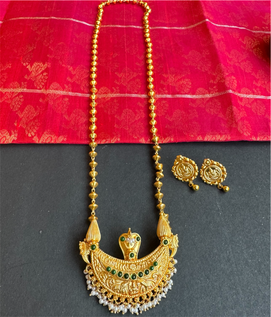 Gemstones used: Natural Pearl, kempu stone (also known as spinel or Zircon).