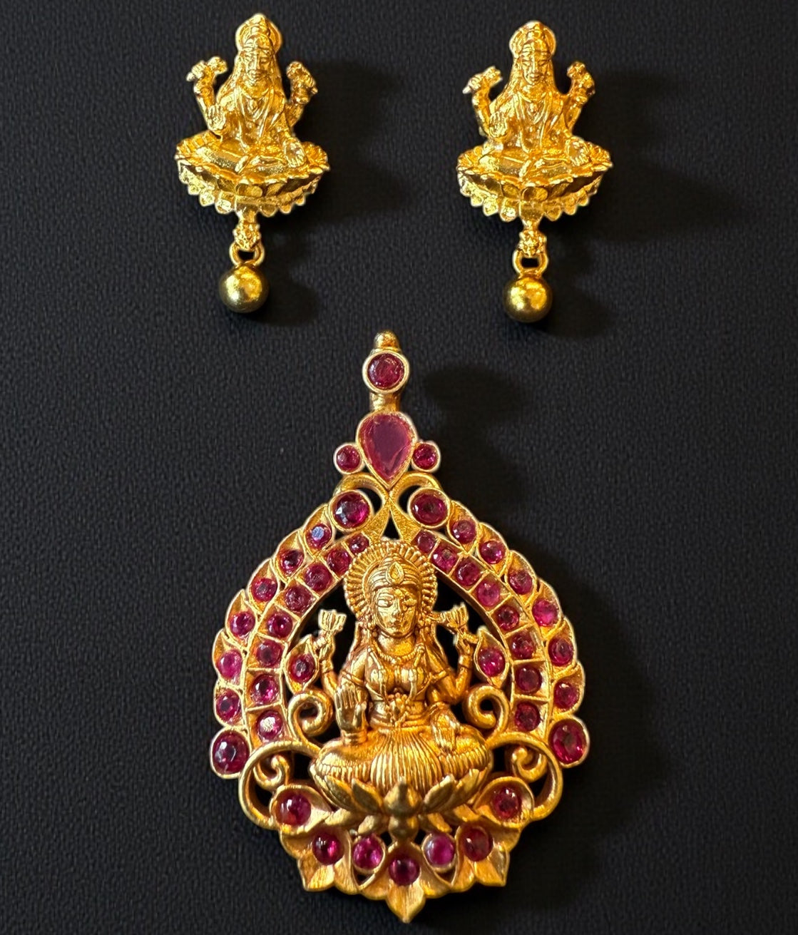 The Padmasini Silver Lakshmi Pendant & Earrings