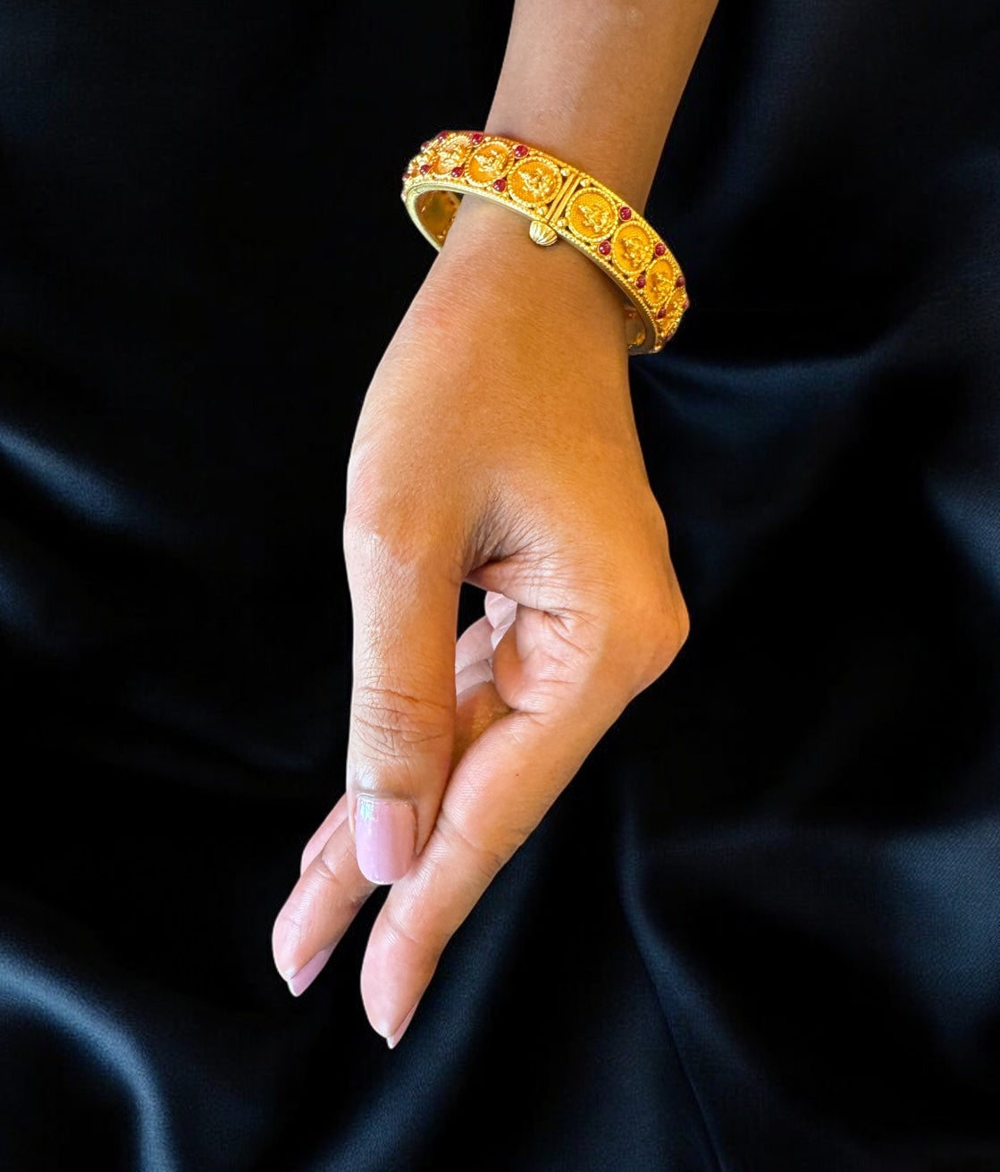 The Aryahi Silver Lakshmi Coin Openable Kada Bracelet (Red/Size 2.2/2.4/2.6/2.8)