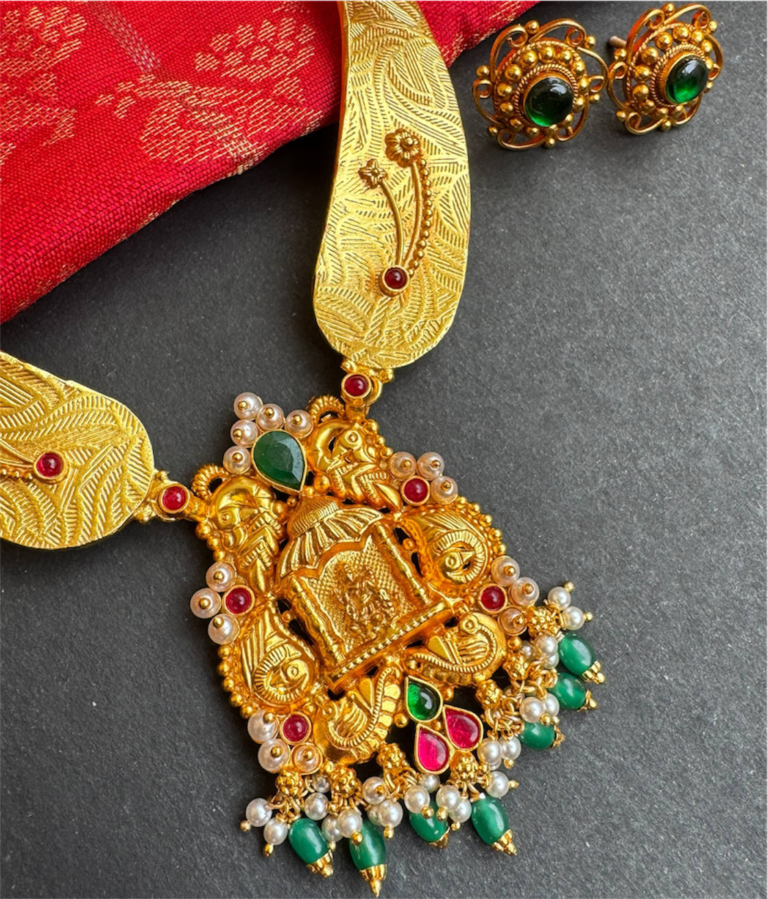 The Mayurasri Silver Lakshmi Kanti Necklace & Earrings- Buy real, 100% authentic antique temple jewellery. - KO Jewellery