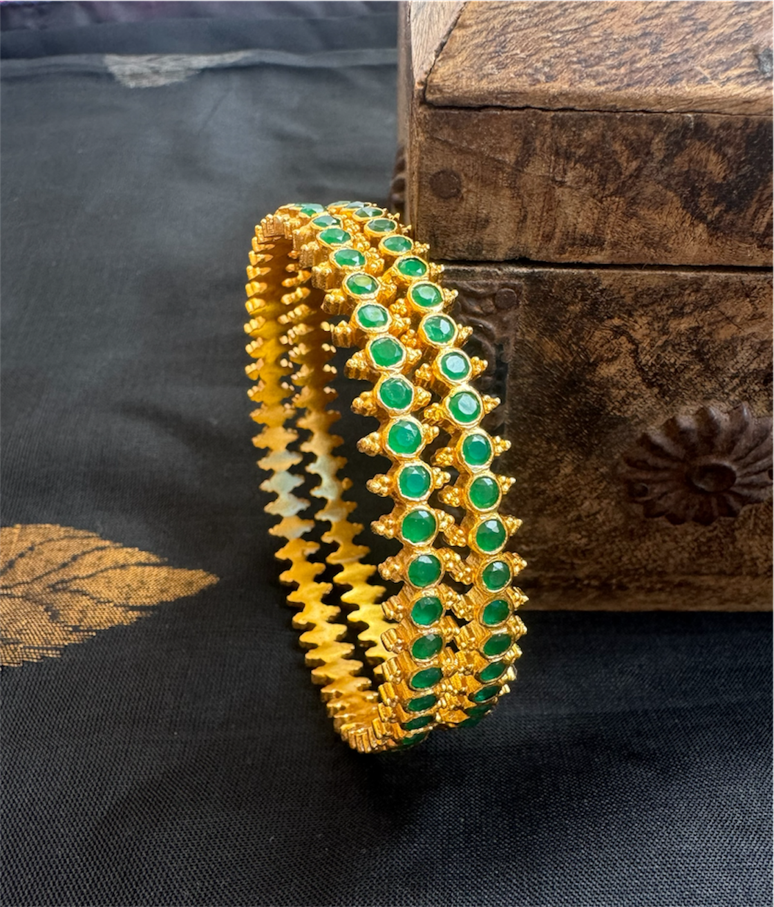 The Pragya Silver Kemp Green Bangle-Single (Red/Size 2.2/2.4/2.6/2.8)