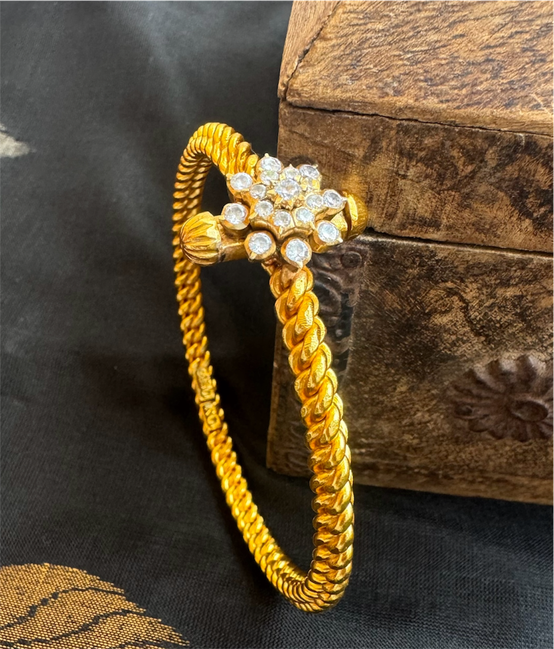 Perfect for lovers of cultural elegance, this unique bangle blends antique aesthetics with lasting quality—making it a striking addition to any jewelry collection..