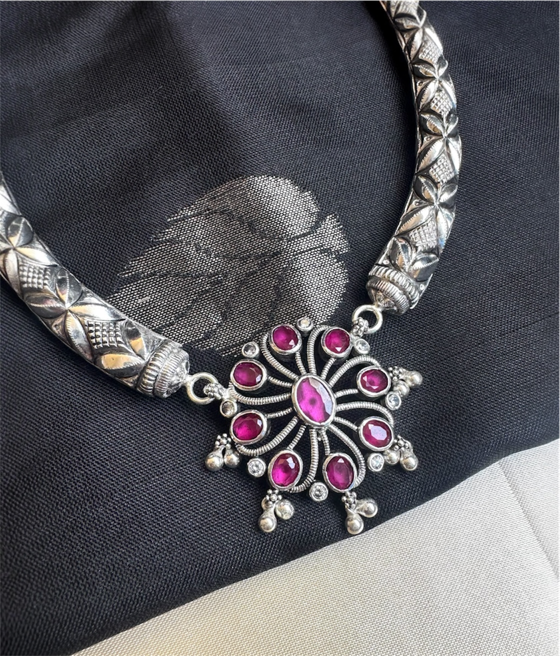 Expertly crafted in 92.5 pure sterling silver, the necklace is finished with a rich oxidised plating that enhances its antique character and highlights the intricate detailing. Every curve and contour is carefully handcrafted by skilled artisans, giving the piece remarkable texture, dimension, and individuality.