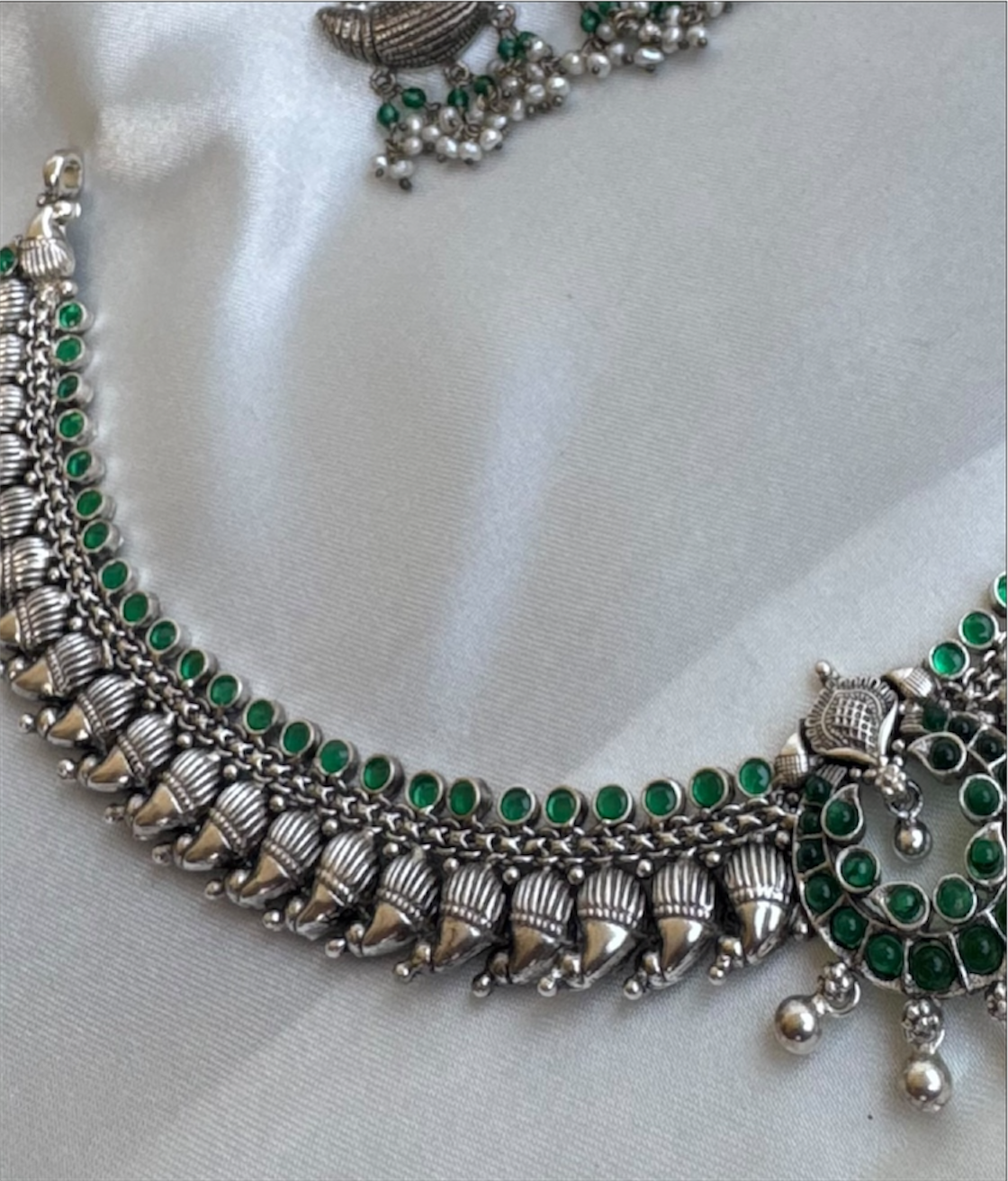 Part of the KO Temple Jewellery Collection, this piece is created using time-honoured techniques inspired by ancient South Indian antique jewellery. Each necklace is crafted in pure Sterling Silver (92.5) through a specialised traditional process, preserving the soul and grandeur of heritage craftsmanship.
