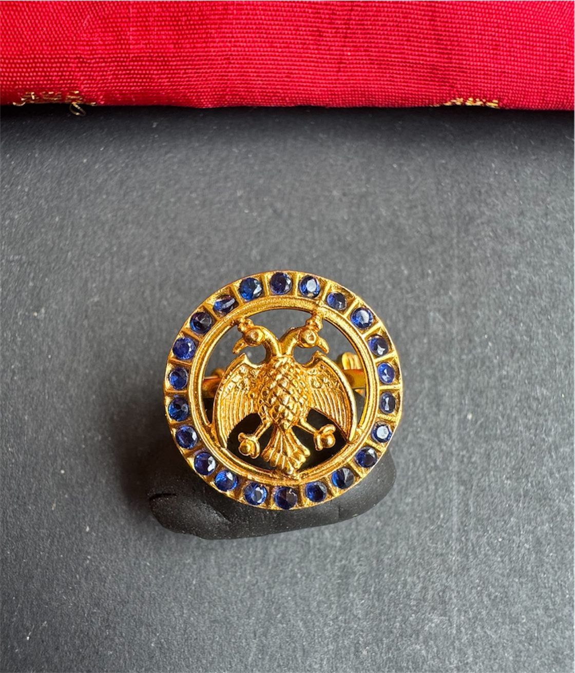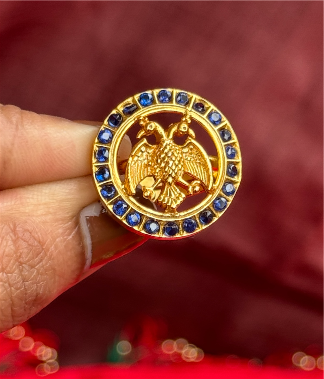 The Rujuta Silver Gandaberunda Adjustable Finger Ring (Blue)