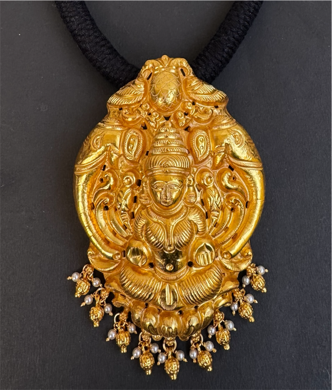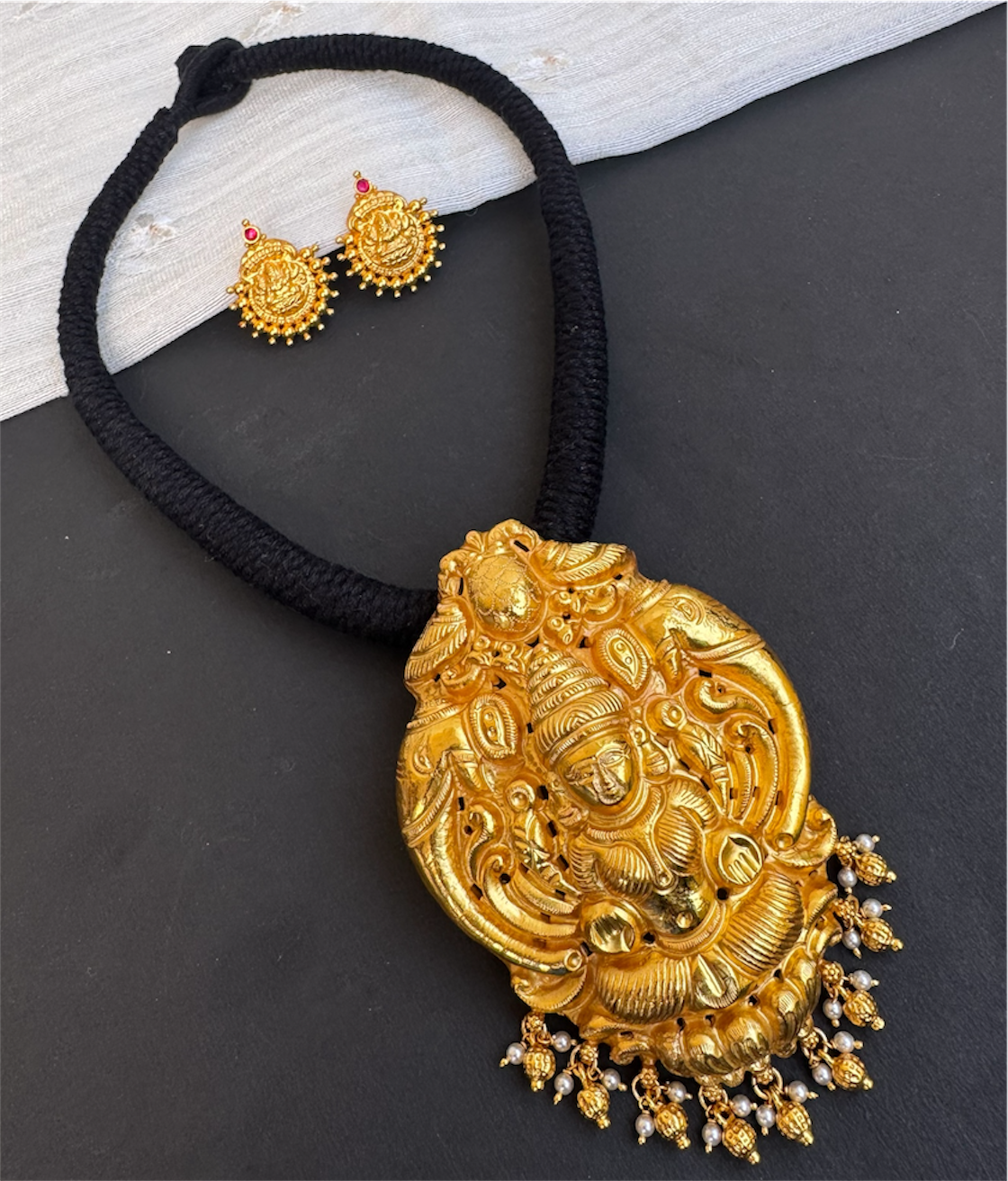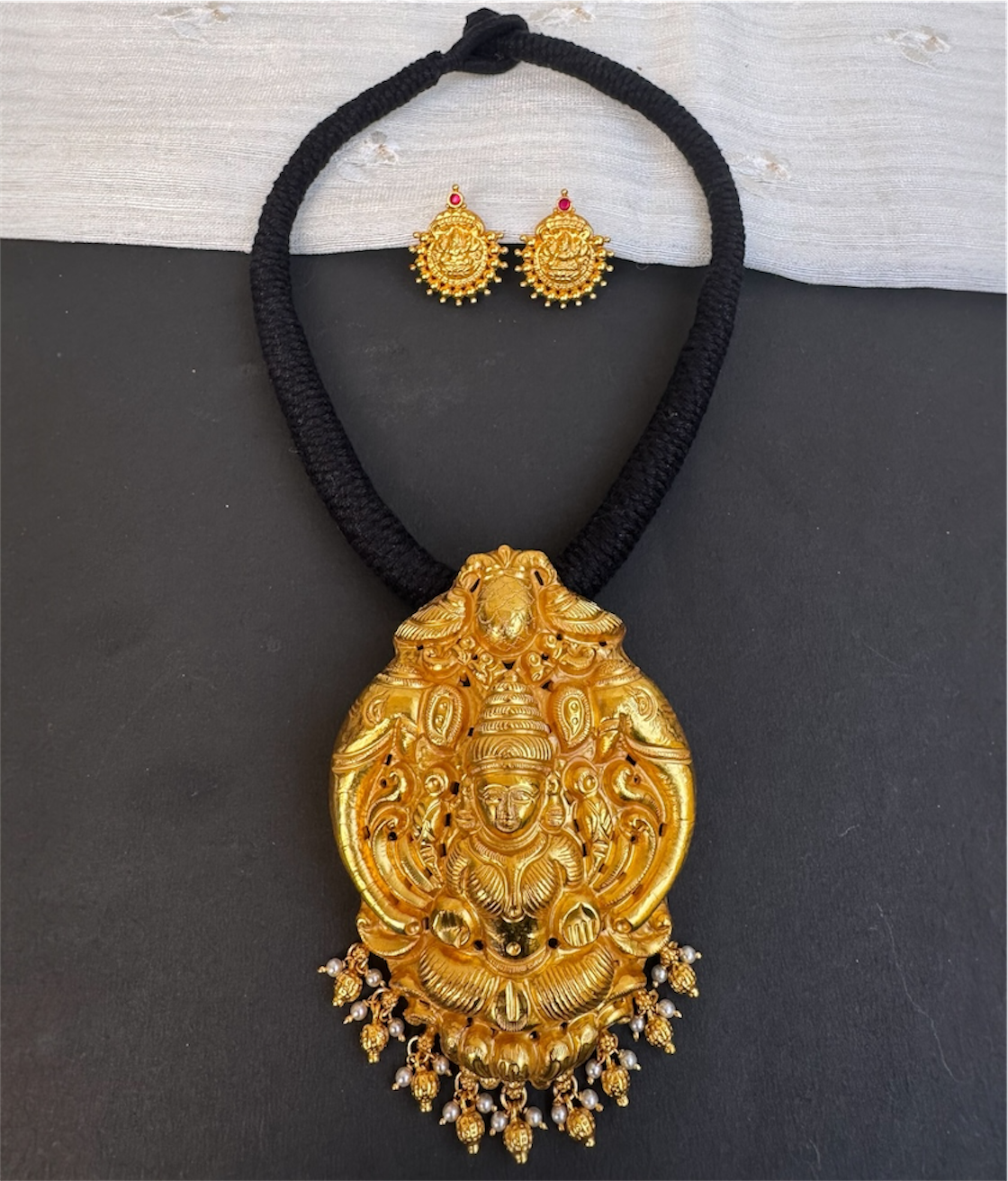 The Narayani Silver Lakshmi Thread Necklace (Black)