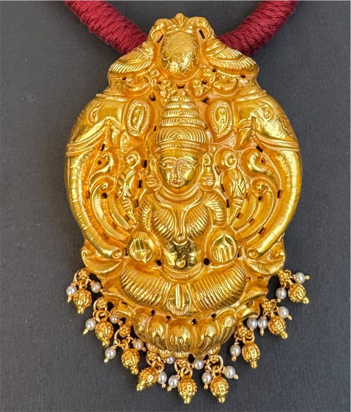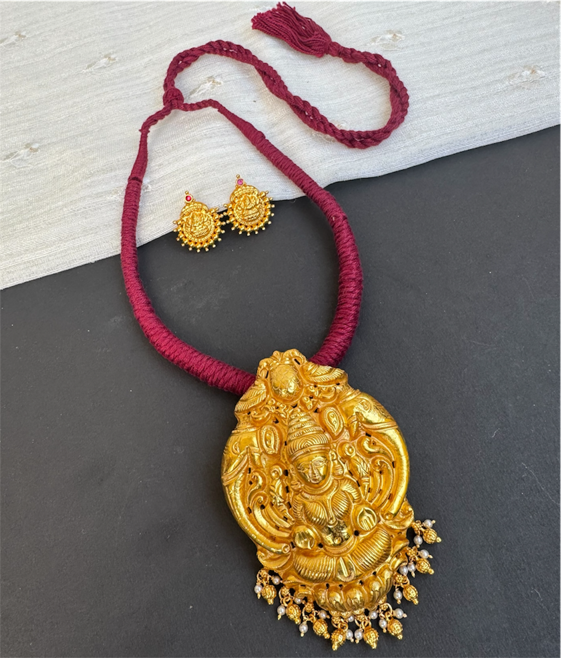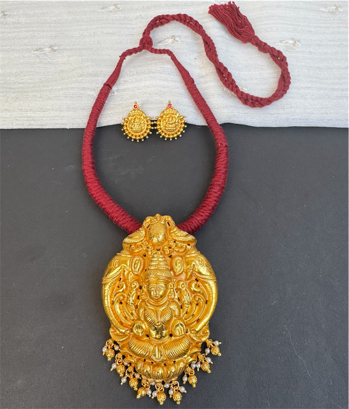 The Narayani Silver Lakshmi Thread Necklace (Maroon)