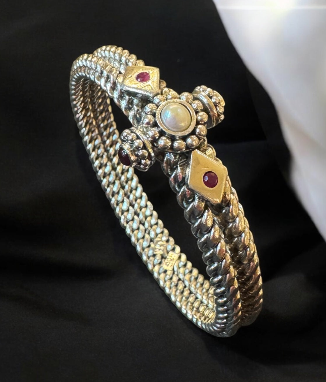 This unique construction gives the bracelet a solid, bold, and truly mesmerising look, making it a striking statement piece.