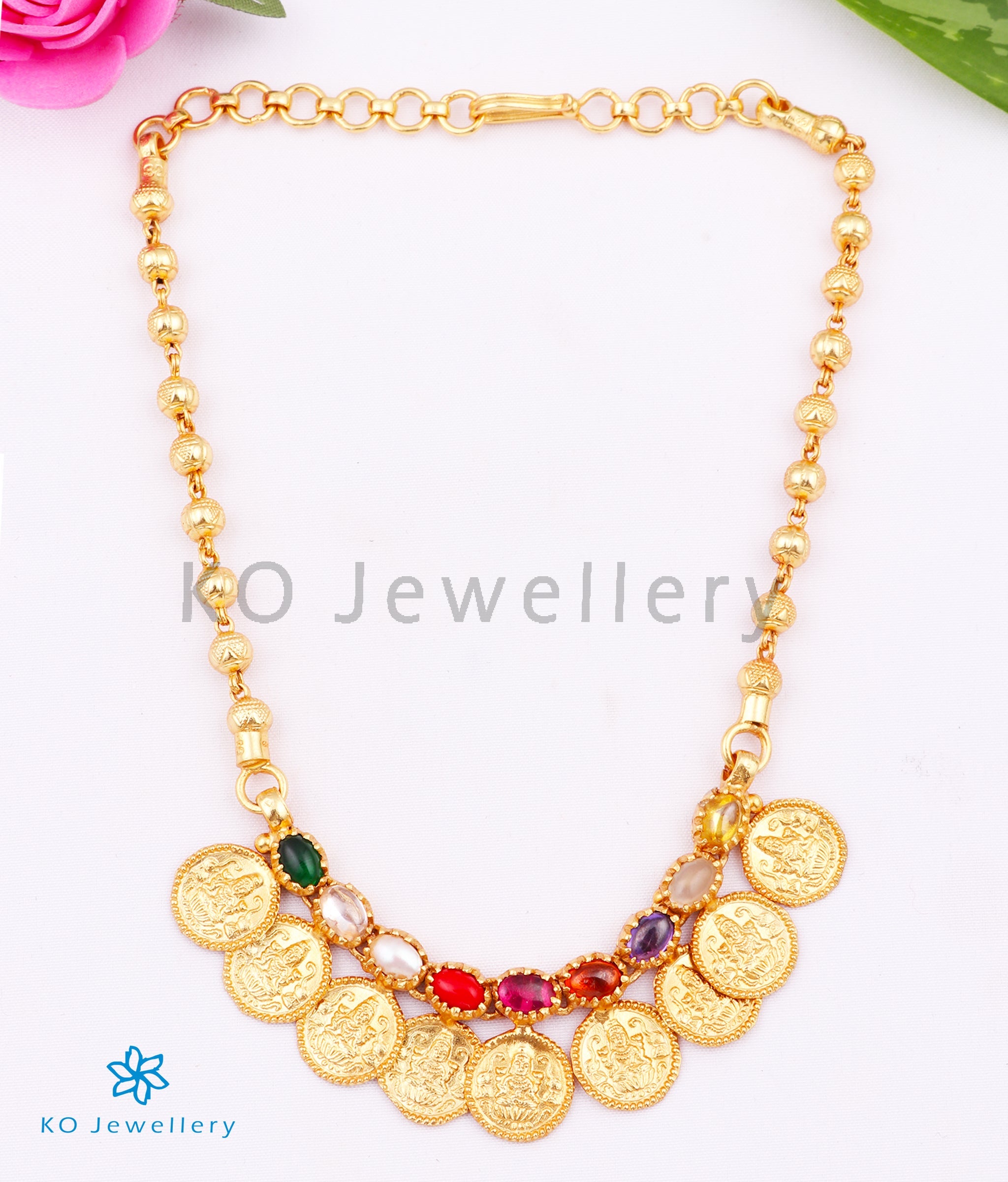The Prarthana Silver Lakshmi Coin Necklace (Navratna)