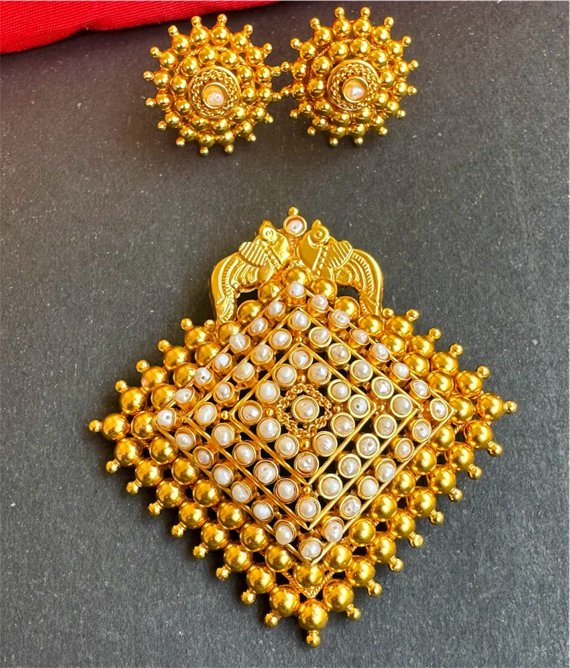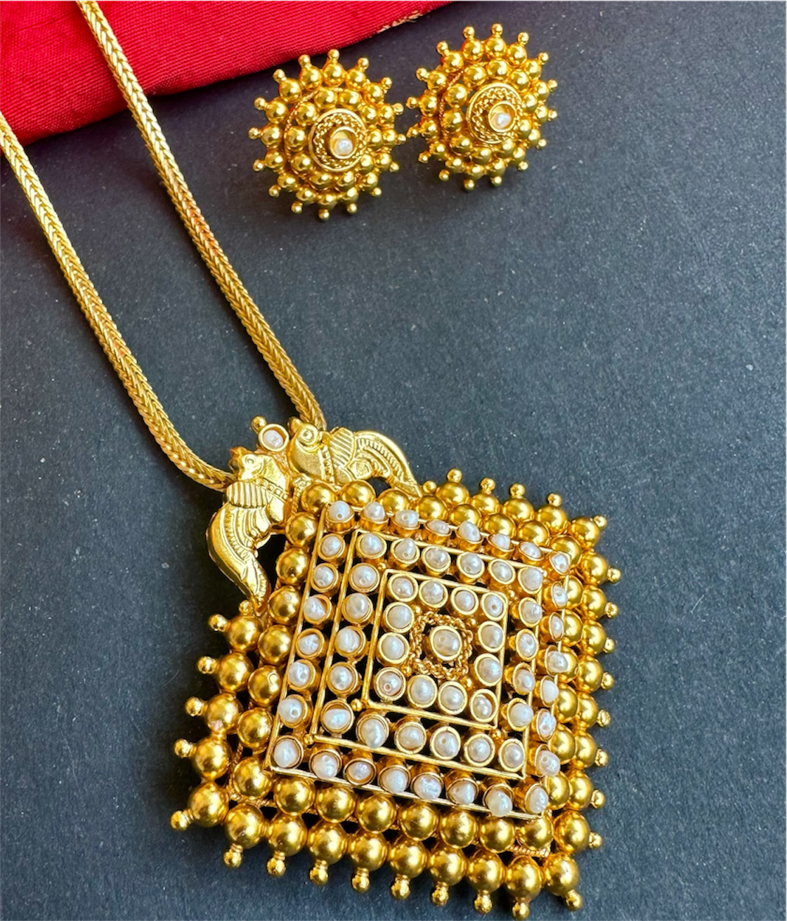 The Amitava Silver Square Pendant & Earrings - Pearl-Buy 24k Gold Plated Indian Jewelry Online - KO Jewellery