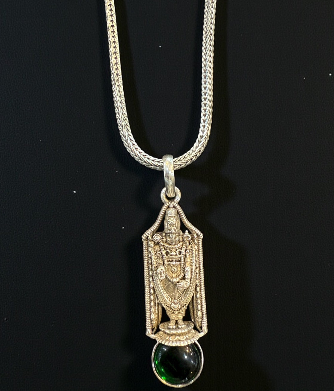 Experience the divine presence of Lord Venkateshwara with this meticulously handcrafted pendant, made in pure 92.5 sterling silver. Each piece is shaped by skilled artisans using traditional techniques that bring out fine detailing in the deity’s features, capturing the serene expression and iconic iconography of Tirupati Balaji.