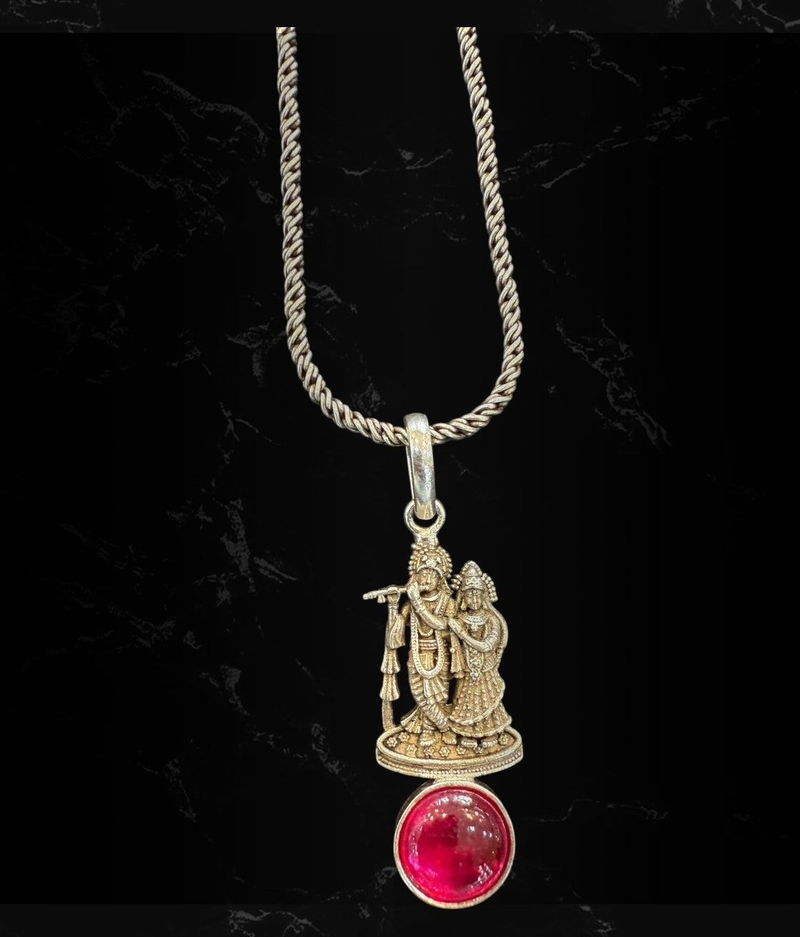 A sacred creation that blends devotion with artistry, this Krishna pendant is lovingly handcrafted — never mass-produced. Forged from premium Sterling Silver (92.5%), it embodies the divine grace and eternal charm of Lord Krishna. Each detail is carved with reverence, making it not just a piece of jewellery, but a timeless symbol of faith, protection, and spiritual beauty. Crafted using techniques used in ancient South Indian antique gold temple jewellery the entire piece is crafted in pure silver and oxidised .