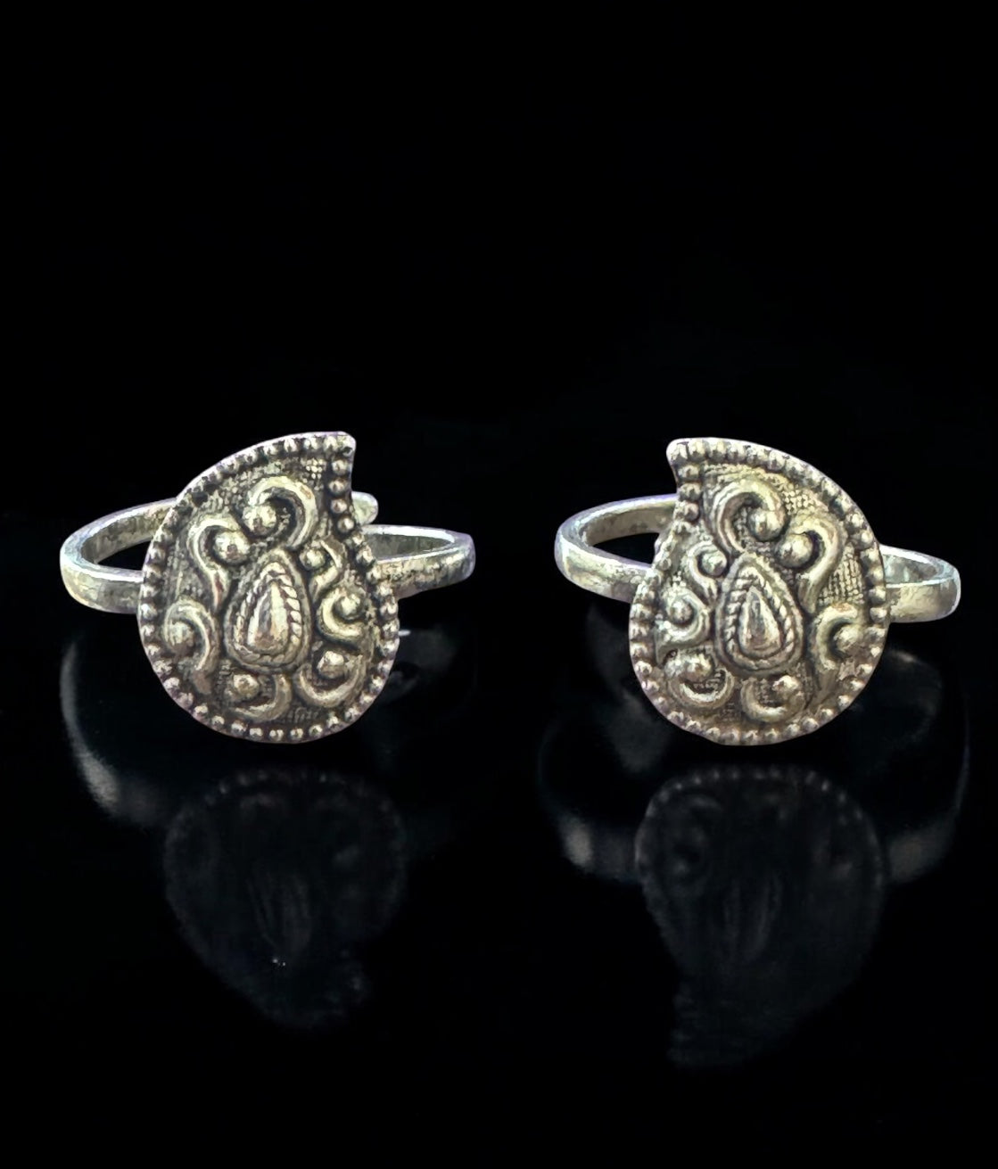 The Prashanti Silver Paisley Nakshi Toe-Rings