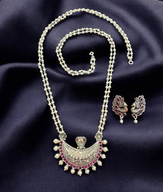 The Anavila Pearl & Turquoise Kokkethathi Silver Necklace & Earrings