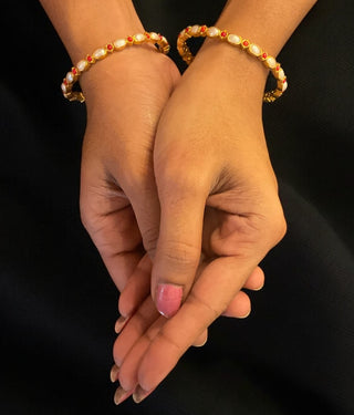 The Adviti Silver Pearl & Coral Bangle (Size/2.2/2.4/2.6/2.8)