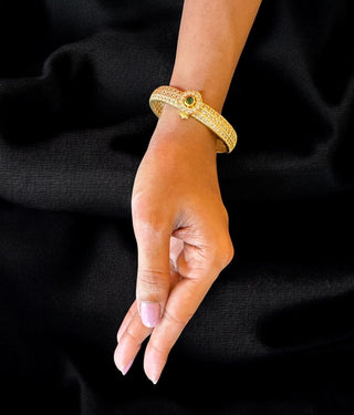The Amruda Silver Zirconia Openable Kada Bracelet (White/Green/Size 2.2/2.4/2.6/2.8)