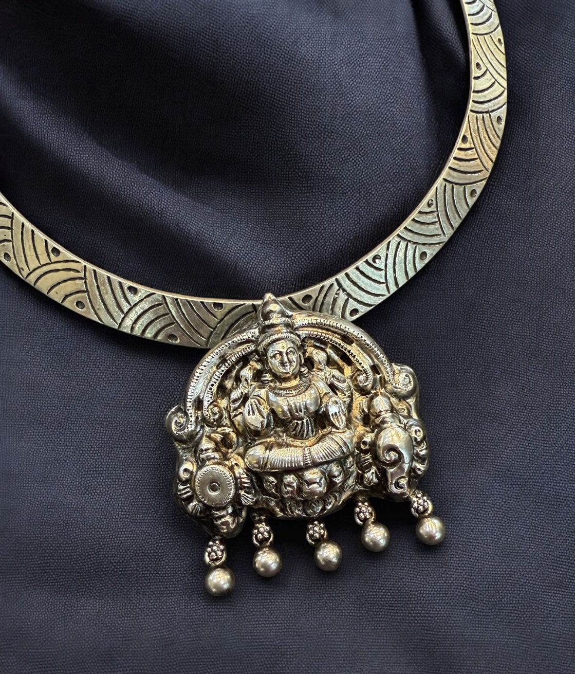Iconic Goddess Pendant on 925 Silver Nakkasi Kanti Necklace - Handcrafted divinity