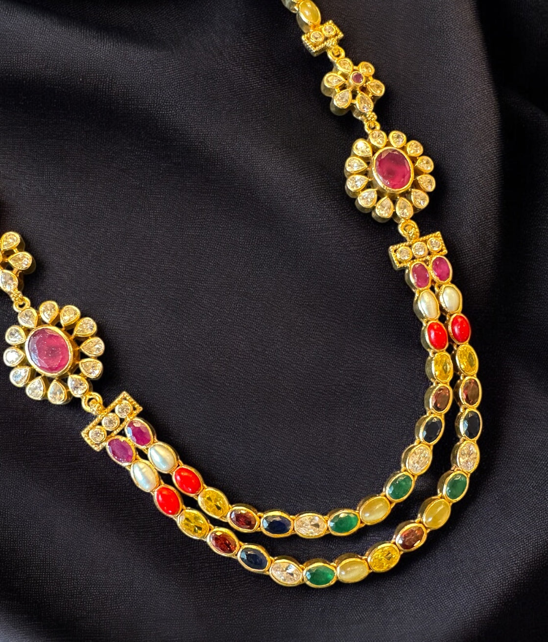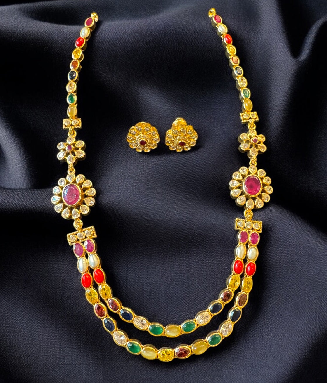 The Anuva Silver Navaratna Layered Necklace & Earrings