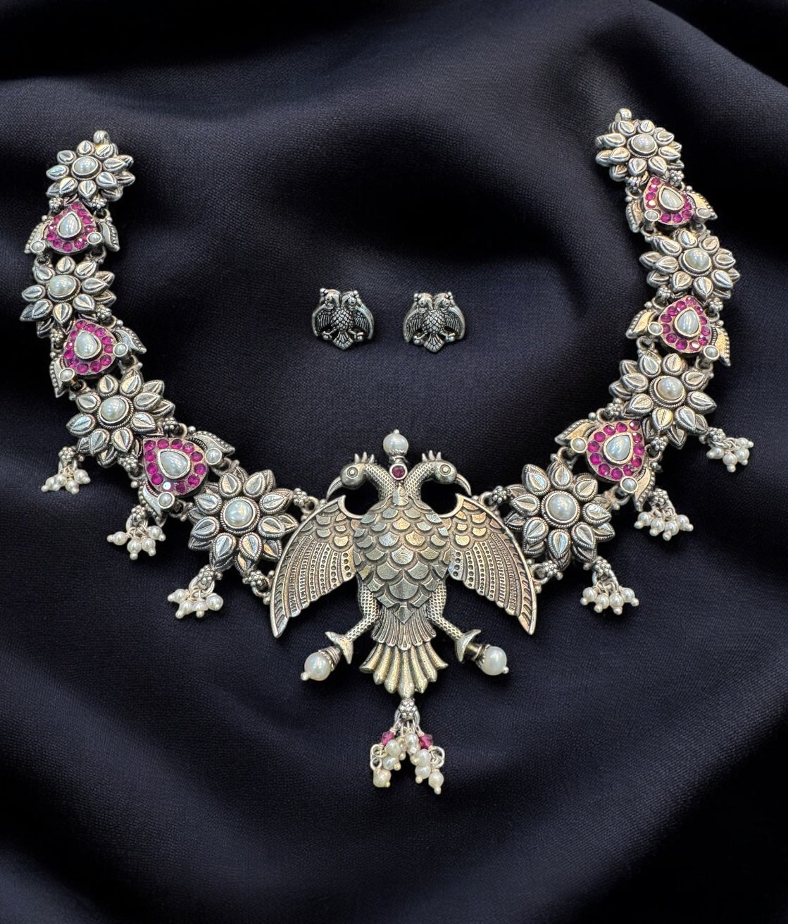 The Atyukti Silver Gandaberunda Pearl Necklace & Earrings
