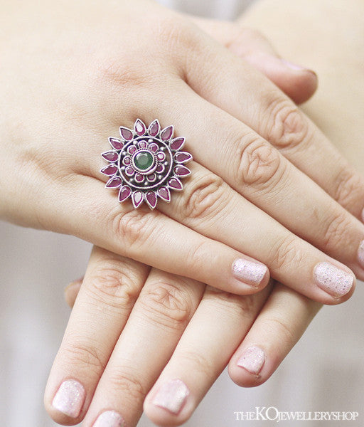 The Vedya Silver Finger Ring(Oxidised)-Buy Temple Jewellery Online - KO Jewellery